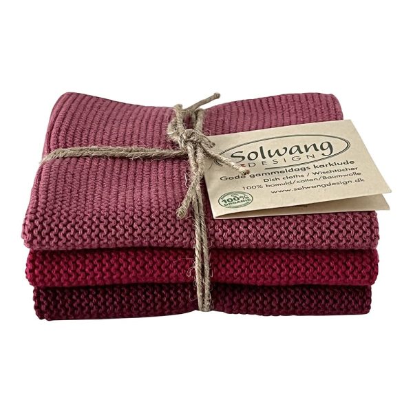 Gestrickte Küchenlappen aus Bio-Baumwolle, 3er-Pack, 25 x 25 cm – Bordeaux