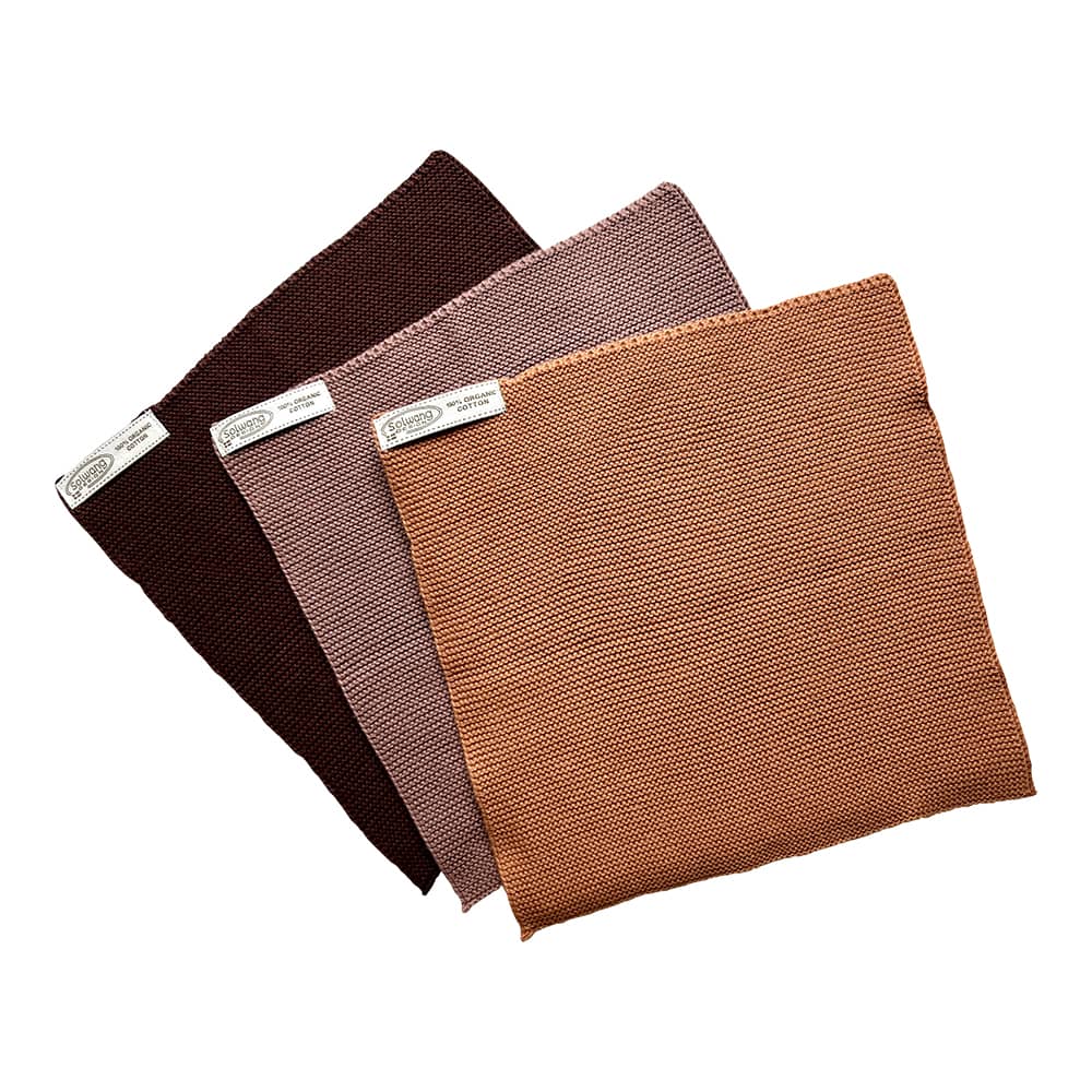Gestrickte Küchenlappen aus Bio-Baumwolle, 3er-Pack, 25 x 25 cm – Schokolade