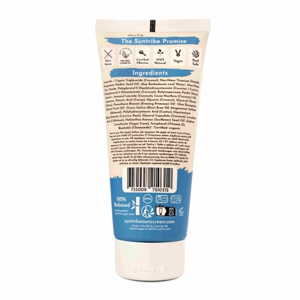 Caprylic / Capric Triglyceride, Non-Nano Titanium Dioxide, Pongamia Glabra Seed Oilยฐ, Aloe Barbadensis Leaf Waterยฐ, Non-Nano Zinc Oxide, Polyglyceryl-2 Dipolyhydroxystearate, Polyglyceryl-3 Diisostearate, Butyrospermum Parkii Butterยฐ, Isoamyl Laurate, Cocos Nucifera Oilยฐ, Alumina, Stearic Acid, Glycerin, Glyceryl Oleate, Oenothera Biennis Oilยฐ, Olea Europaea Fruit Oilยฐ, Oryza Sativa Bran Oil, Magnesium Sulfate, Polyhydroxystearic Acid, Dipotassium Glycyrrhizate, Glyceryl Caprylate, Levulinic Acid, Helianthus Annuus Seed Oilยฐ, Sodium Levulinate, Tocopherol, Bisabololยฐ. ยฐZertifiziert biologisch