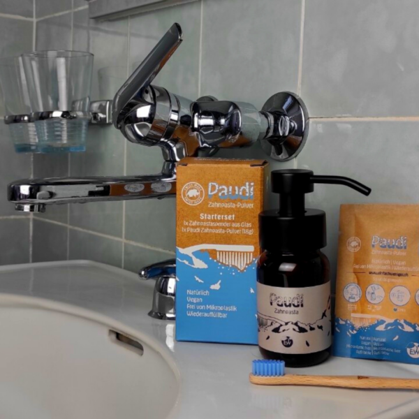 Ich habe als Backer das Paudi-Starterset (2x) erhalten, und nun brauchen wir Nachschub. Ich bin sehr zufrieden mit Paudi, verwende seither keine Tuben-Zahnpasta mehr. Allerdings wรผrde ich mir wรผnschen, dass bald auch eine Variante mit Fluorid auf den Markt kommt, damit man die Wahl hat.