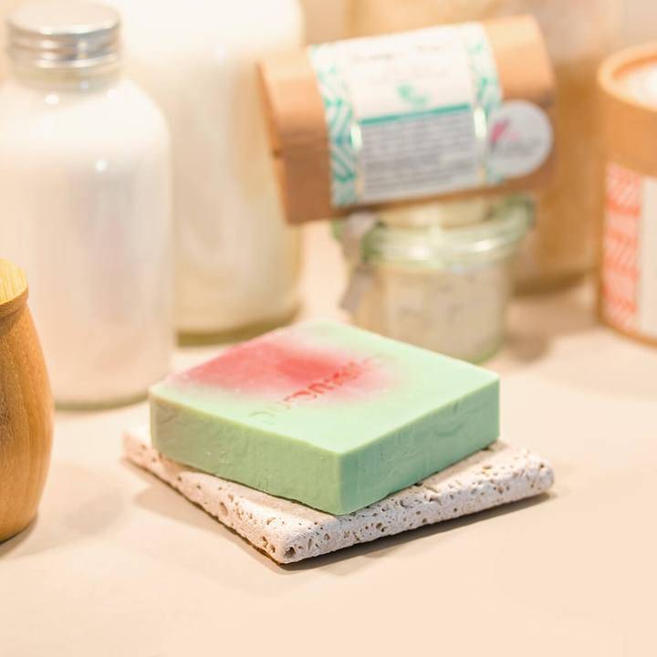 Die Seifenablage Travertinstein ist nicht nur optisch ein absoluter Hingucker, sondern verhindert Seifenmatsch und Rumgeflutsche, wie man es von Seifenschalen so kennt. Die Korkfรผsschen sorgen dabei dafรผr, dass auf deinen Ablagen nichts zerkratzt. Das Format ist optimal auf deine puremetics Naturseifen abgestimmt und verlรคngert ihre Lebensdauer durch optimale Trocknung.
