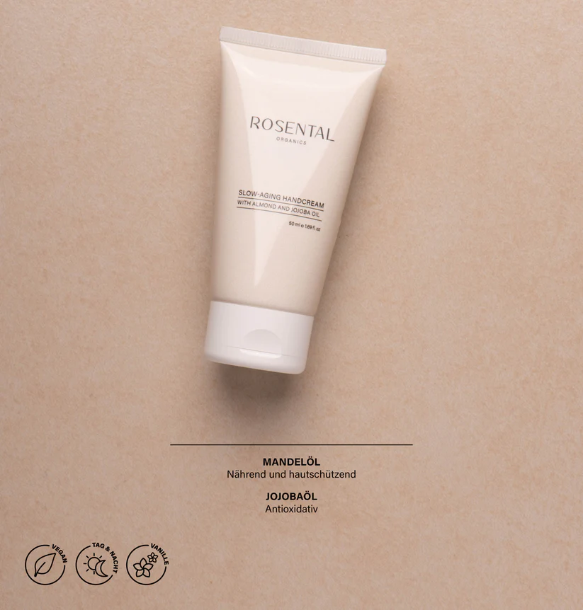 Entdecke die luxuriöse Slow-Aging Handcreme von Rosental Organics, die ultimative Pflege für trockene und rissige Hände. Diese reichhaltige Handcreme vereint die Kraft von natürlichen Inhaltsstoffen, um deine Haut nicht nur intensiv zu hydratisieren, sondern auch zu reparieren und zu schützen. Mit einem angenehmen Vanilleduft und einer cremigen Textur bietet diese Creme ein wahres Verwöhnerlebnis.