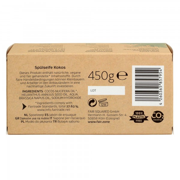 Cocos Nucifera Oil (Kokosnussöl)*, Helianthus Annuus Seed Oil (Sonnenblumenöl), Aqua, Brassica Napus Oil (Rapsöl), Sodium Hydroxide