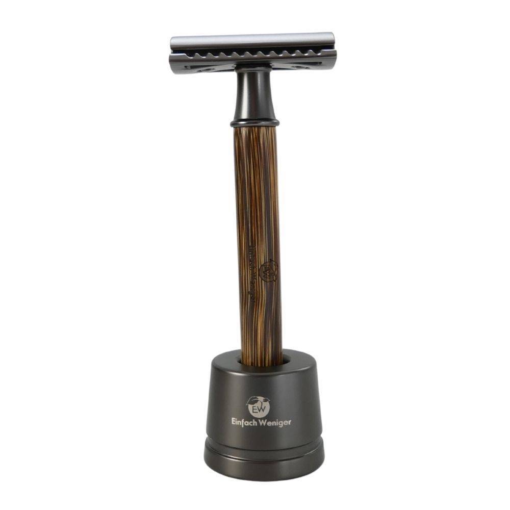 Was hat ein Rasierhobel, das ein Wegwerfrasierer nicht hat? Klasse. Die traditionelle Form, das glänzende Metall, der elegante Griff – da kann ein Einmal-Haarabschneider nicht mithalten. Wo aber bewahrt man so einen Klassiker stilgerecht auf? Auf der Badezimmerablage nimmt er relativ viel Platz ein und hinterlässt ausserdem manchmal Kalkflecken. Die Lösung: ein Stand, der extra für Rasierhobel hergestellt wurde und mindestens genauso elegant ist, wie der Hobel selbst.