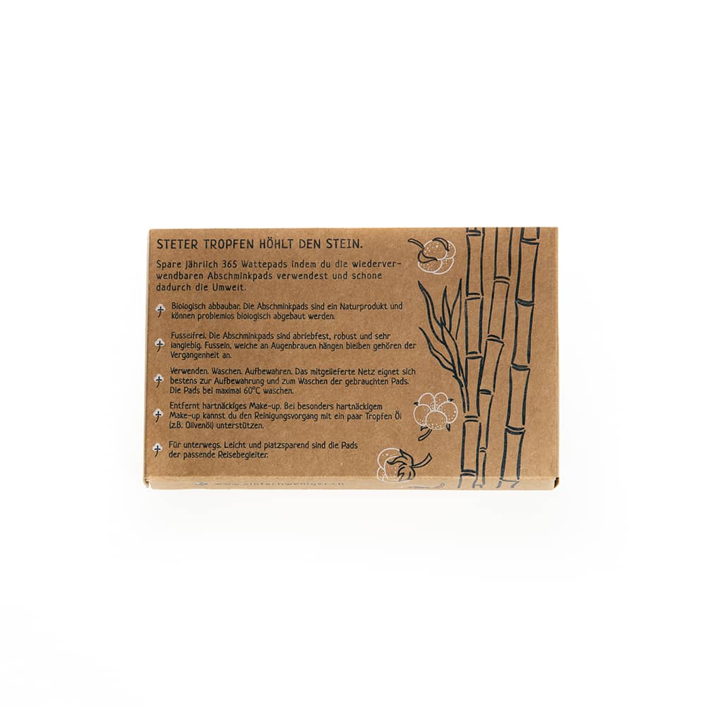 Spare jรคhrlich 365 Wattepads indem du die wiederverwendbaren Abschminkpads aus Bambus und Baumwolle verwendest und schone dadurch die Umwelt.