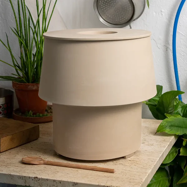 • Reduziere CO2-Emissionen und speichere Kohlenstoff dank des atmungsaktiven Tons im Komposter.